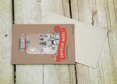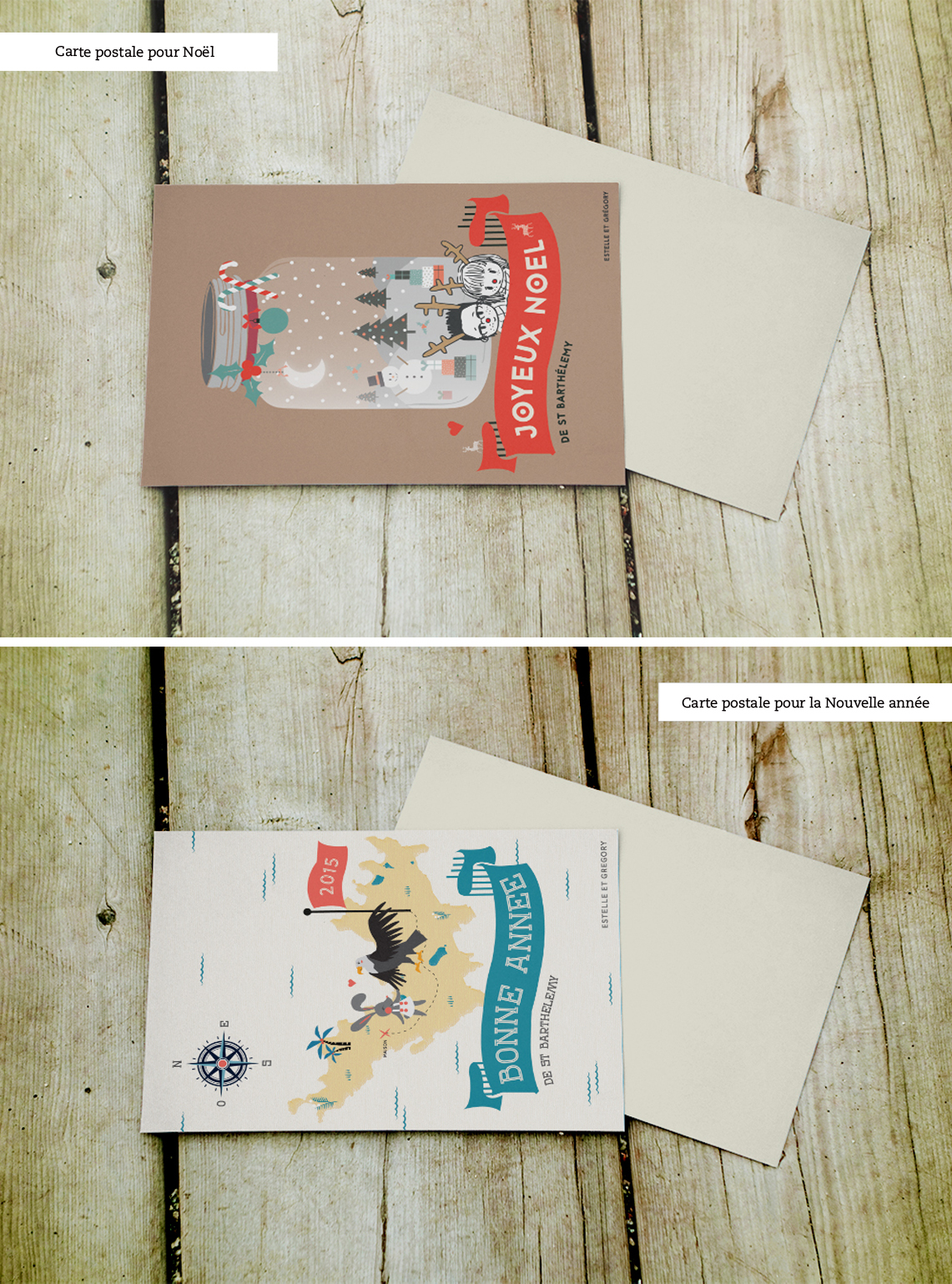 Création de deux cartes postales pour les fêtes de fin d'année. Réalisation de l'illustration et du graphisme à 100%.