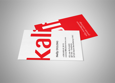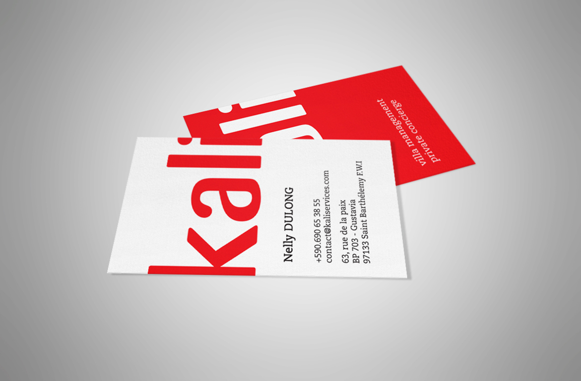 Réalisation et mise en page d'une carte de visite (recto-verso format 8,5 x 5,4 cm) pour l'entreprise Kali services "service management et conciergerie" - création du logotype
