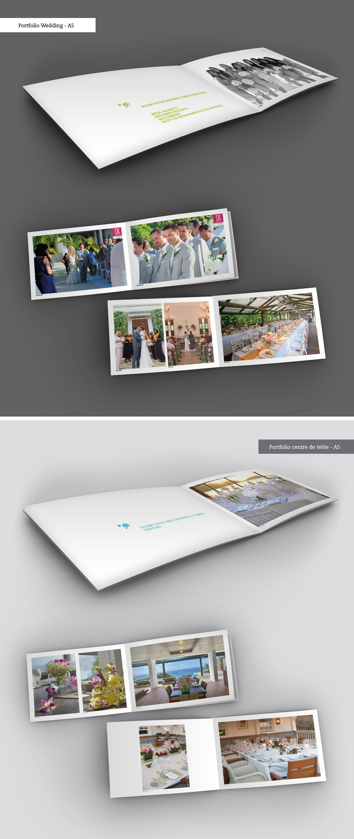 Réalisation et mise en page de deux brochures photos format A5 pour présenter le travail de la fleuriste "Bloomy"